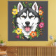 Husky Sled Dog And Colourful Mirablis Flowers. Celebrate the natural beauty and heritage of Connecticut territory with a whimsical design. A perfect accent for any Connecticut home. A souvenir worthy of a Connecticut hometown national park vacation.