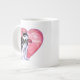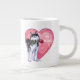 Animal Parade Romantic Siberian Husky Dog Personalised Heart and Love Giant Coffee Mug is a great way to show your giant love for your Valentine. Our design features our fun artwork of a black and white Husky holding a pretty rose in its mouth with layered purple, red, and pink hearts behind digitally painted by our award-winning children's illustrator, Traci Van Wagoner. This sweet dog in love design is a perfect gift for Valentine's day, his or her birthday, for proposing marriage in a fun and original way, or just to say, I love you. Woof!