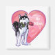 Animal Parade Romantic Siberian Husky Dog Personalised Heart and Love gifts, cards, and accessories brought to you by Imagine That! Design features our fun artwork of a black and white Husky holding a pretty rose in its mouth with layered purple, red, and pink hearts behind digitally painted by our talented children's artist, Traci Van Wagoner. This sweet dog in love design is a perfect gift for Valentine's day, his or her birthday, for proposing marriage in a fun and original way, or just to say, I love you. Woof!
