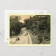 A reproduction of a vintage image shows New Rochelle NY - HUTCHINSON RIVER PARKWAY. Construction of the parkway began in 1924 and the first two-mile section was completed in December 1927. By October 1928, 11 miles of the parkway were open, connecting US 1 in Pelham Manor with Westchester Avenue in White Plains. The original roadway was an undivided, limited-access parkway, designed with gently sloping curves, stone arch bridges, and wooden lightposts. The original 11-mile section included bridle paths along the right-of-way. [Z10560]