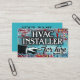 Colourful arty HVAC Installer business cards in turquoise, aqua, red, yellow. HVAC Installer for hire business cards.