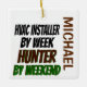 This unique ornament featuring the quote "HVAC Installer by Day Hunter by Weekend" is perfect for any HVAC installer that loves hunting.