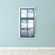 Hyacinths Floral Spring Window Faux View Wrapped Canvas. A beautiful fake window view canvas print: a spring fantasy landscape with blue hyacinth flowers field and a clouded blue sky with white sunny clouds full-colour photography canvas. This beautiful flower landscape view wrapped canvas is fully customisable, add your text(s) and images! A great spring landscape flower fields window view gift to hang on your wall at your home in the basement or in the office in your cubicle!