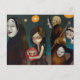 I've long been a fan of Japanese art - particularly ukiyo-e, woodcuts, and scrolls that feature the wonderful folklore, Shinto beliefs, supersitions, ghosts, goblins, supernatural and magical sides to Japanese thought. I studied Asian art history and was lucky enough to view a lot of centuries-old artworks firsthand and on a personal basis. After visiting Japan several months back it left an indelible impression on me - in fact I'm going back again next month! But I digress..... here comes some of the background behind tonight's painting - "Hyakki Yakō" is the title - it translates roughly to "Hundred Demon Night Parade". There are several famous scrolls from hundreds of years back that depict this mysterious event - a summer night where all sorts of ghosts, spirits and Yokai walk the streets of the Earth, bringing bad fortune to those living creatures who witness them. Kinda spooky! Famed artists of centuries past like Tosa Mitsunobu, Toriyama Sekien, Utagawa Yoshiiku, and Aotoshi Matsui filled their scrolls with fanciful interpretations of the Hyakki Yakō and recurring characters often showed up - some of which I have included in my painting! You also will see Hyakki Yakō and Yokai references in many more contemporary Japanese cultural works of manga, movies, and anime - notably yokai master Shigeru Mizuki of back in the 1960s, or even Hayao Miyazaki of today. Sorry to be so wordy - just a subject I really like, and wanted to tell you all about, to give some context =) At any rate - I've created my own version of the Hyakki Yakō - with a bit of Strangeling flair of course ;) A dark parade of sinister (yet amusing!) creatures out of Japanese folklore make their nighttime journey against a backdrop of paper lanterns. At the front of the parade is a Noh-mask sporting noppera bo ghost (you may remember these from my "Faceless Ghosts" painting!), one of my sad looking long-haired big eyed girls is next, clutching a Daruma head (with only one eye filled in - I wonder what her unfulfilled wish is?). Some other noppera bo with Noh masks appear - one seems to actually be a skeleton behind his mask! A Rokuro-kubi is in line - these are creepy - Geisha girl-like ladies who have impossibly long necks that can strech like a snake! There is so much going on, you could look at it many times and discover things anew! This is my own original acrylic painting.