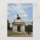 Hyde Park Corner is the confluence of six major London roads. In its centre stands the Wellington Arch. Built as a  memorial to Duke of Wellington, and forming a grand entrance into London, it was originally the north west entrance to the grounds of Buckingham Palace. The gilded statue on the top is the Angel of Peace. This photograph was taken from the western side, where the pedestrian approach 'leads' the eye in a gently curve towards the monument. It is a clear sunny day, and the viewer is invited to visit the monument or simply sit on the grass and gaze at its magnificence.