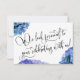 In this pretty wedding RSVP design, I've used hydrangea watercolors in shades of blue and light purple, along with an elaborate, modern calligraphy font to create graphic typography overlays reading "Rsvp", "M", and "I'll be on the floor if you play" on the front and "We look forward to your celebrating with us!" on the back. Fill in the template blanks with your details to personalise the design. All layers were added separately and left unlocked so you can also click to further customise and re-position text or even change sizes or fonts.