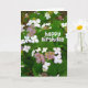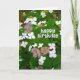 A birthday card design with a photo of one of the less common types of Hydrangea, Hydrangea Aspera which has these wonderful almost cartoon like flowers. Happy birthday is written in a kind of cartoon style font subtly shaded to match the colors of the flowers.