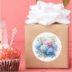 Present your birthday gifts with this elegantly designed floral round sticker. The artwork features a watercolor-illustrated image of pastel blue and pink hydrangea blooms, accented with a gold "Happy Birthday" banner and subtle sparkle details. This sticker is suitable for favor bags, envelope seals, and various other applications. Available in both large and small sizes. The artwork is also available as a template, allowing for easy transfer to other products if desired.