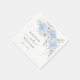 Elegant floral Wedding napkins, featuring a pastel blue delicate hydrangea floral arrangement and elegant typography.