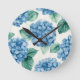 Hydrangea Blues Floral Watercolor Botanical Blooms Design Wall Clock