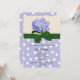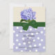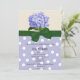 A beautiful invitation for a beautiful bride to be! It features a lavendar hydrangea at the top and a lavendar and white polkadot pattern on the bottom. A graphic of a green ribbon and bow separate the two. All text is customisable.