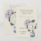The matching RSVP card for our Hydrangea Dreams wedding collection featuring a watercolor image of beautiful hydrangea blooms in purple and white in a blue tinged glass jar for your rustic or garden themed wedding party.