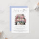 Hydrangea Floral Bridal Shower Invitation - Drift into a world of romance and charm with this Hydrangea Floral Bridal Shower Invitation, a vision of vintage elegance and modern sophistication. A beautifully illustrated antique truck, brimming with lush, fresh hydrangeas in delicate shades of blue and lavender, sets the scene for a celebration filled with love and timeless beauty. The graceful blooms spill over the edges, creating an air of effortless enchantment, while the soft watercolor hues evoke the essence of a dreamy garden gathering. Complementing this picturesque design is an elegant, modern script typography that adds a touch of contemporary refinement, ensuring your invitation is as unforgettable as the event itself.