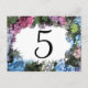 Customise these pretty Hydrangea Flower Frame Table Numbers and create a different card for each table at your garden theme marriage reception, bridal shower or engagement party. These classy custom flowery table number cards feature a digitally painted close up floral photograph of blue, pink and white hydrangea flower blossoms with green leaves.