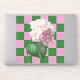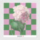 This is my original graphic artwork of a vintage illustrated hydrangea flower silhouette on a faded style chequered background in complementary tones and placed on a large sticker. This sticker is 8 inches by 8 inches, however you may change size to larger or smaller, if desired. These stickers are a quality product that will not leave sticky goo on your things. They are printed with inks that won’t fade. Put them on anything you want to personalise and decorate or give as a gift.