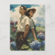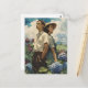 The postcard captures a timeless scene with a couple standing back to back in a lush field of hydrangeas. The vintage tones enhance the romantic atmosphere, highlighting the couple's attire that reflects the fashion of a bygone era. The hydrangeas create a picturesque backdrop, their delicate blooms adding a touch of softness to the overall composition. The postcard transports you to a moment of simple elegance, where love and nature intertwine in a beautifully nostalgic way.