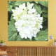 White hydrangea blossoms printed on canvas.