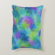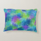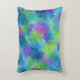 An abstract in shades of green, purple, lavender, blue and aqua grace this throw pillow.