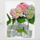 Classic rustic pink, blue, and green Hydrangeas in Mason jars