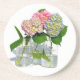 Classic elegant country core pink, blue, and green Hydrangeas in Mason jars