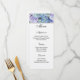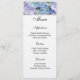 Menu Card is shown on the linen white paper with a colourful hydrangeas print. Script and standard text in light Black.