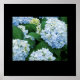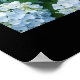 Poster shown with a photo print of pretty blue hydrangeas and with a black background. Customise this item or buy as is.