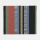 A beautiful fleece blanketfeaturing a multicolored stripe pattern inspired by vintage Scandinavian design. The retro design features vertical stripes in muted shades of red, blue, green and tan as well as horizontal stripes in black and white. A beautiful gift for anyone who loves retro Scandinavian and cosy designs.