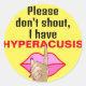 If you suffer from hyperacusis you will know that it can be very debilitating and noise can vibrate through your head. I am deaf in one ear, and also suffer from hyperacusis, this can be very confusing for some people because they think they need to be louder around a deaf person, (which is not the case!) I find this badge and a pair of noise cancelling earphones help a lot.