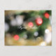 Postcard saying Merry Christmas in Finnish ("Hyvää Joulua!"). Beautiful Christmas theme bokeh background and white text.