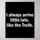 I Always Arrive Late Like The Truth Funny Sarcasti Poster