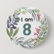 I Am 8 Elegant Botanical Plants Birthday Pin Badge
