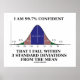 Showcase your wry stats geek humor with this bell curve poster featuring percentages under the curve along with the classic stats saying: "I Am 99.7% Confident That I Fall Within 3 Standard Deviations From The Mean". Make others do a double-take with a dose of educational, scientific statistical confidence attitude today!