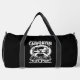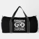 This black duffle bag features a bold declaration for skilled tradespeople: "I AM A CARPENTER I CAN'T FIX STUPID BUT I CAN FIX WHAT STUPID DOES." The design includes a hammer and wrench within a saw blade, making it a perfect humourous gift for any carpenter or builder. Edit colour of the bag caps and body in the Design tool to your favored colour