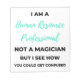 I Am A Human Resource Professional Not A Magician But I See How You Could Get Confused design. This is a short funny quote which is great as a funny gag gift for HR employee. Also suitable as a Human Resource gift for coworkers.