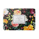 Modern watercolors colourful flowers pattern on black changeable background colour. White square frame for funny text-I am always at your feet.