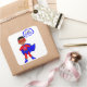 With this cute little superhero around, there's no need to worry. Our hero is wearing a cool red and blue costume. His hands sit on his hips, to show that he's ready for action, while his blue cape blows in the wind. What an inspiration this cartoon character is for the superhero in your family.
