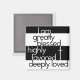 I am greatly blessed, highly favored, deeply loved. Modern black & white graphics.