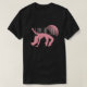 I give wanted to give this a 4 instead of a 5 because these Basic DARK T0shirts run unexpectedly SLIM or Narrow. Which is great if you do not have a potbelly, but I have a paunch. It isn't the shirt's fault that I've got a beer belly. The design and shirt itself is a quality cotton shirt. The color is more of a deep purple, but still a very pretty color. The Basic DARK T-shirts run a bit SLIMMER than the Basic Ts. The neck is a fraction narrower (or seems to be narrower) also. I'm a paunchy middle-aged woman and my neck is 12 inches (31cm) thick and the neckline fell about the same as in the photo of the man, and I had the desire to tug it a bit. So if you're a thick necked man or like loose shirts, be aware these are slimmer shirts. Once I get rid of my lockdown paunch it'll look great. The shirt washed well in cold water with no apparent bleeding. We don't have a dryer, so it hung dry. Did not shrink. Love the colors and the design. The design looks smaller on my shirt than it does on the model on-line. But still, it looks good on the shirt. The printing looks as it does on the model, just the size seems fractionally smaller. Washed garment in cold water, hung dry and design appeared unaffected.
