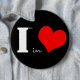 I Am In Love text and a drawing of the red heart. Love, romance and Valentine's Day theme for fun and good mood. Black button. You can change the colour of the background
