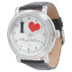 I Am In Love text and a drawing of the red heart. Love, romance and Valentine's Day theme for fun and good mood. Funny and romantic wristwatch. Customisable. You can add your own text or delete the template text.