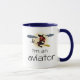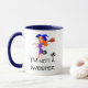 Image of a beautiful lady witch with a broom over her shoulder, a black cat with raised back and a text I'm not a sweeper. Flying witch against the background of yellow moon and a cat on a stick on the other side. Text I'm an aviator. Funny coffee mug for Her. Customisable. You can change two images and you can change or delete two template text independantly. Have fun! The images are taken from the openclipart_org and are free for commercial use.