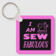 Keychain key fob holder ring printed with I Am Sew Fabulous In Black And Pink creative word text phrase pun and sewing machine graphic art design illustration by TheFabricSeal print on demand shop at Zazzle.com #ZazzleMade https://www.zazzle.com/store/thefabricseal TheFabricSeal©️Original.