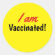 I am Vaccinated Yellow Text Classic Round Sticker