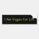 I Am Vegan For Life. Green. Slogan. Custom Bumper Sticker