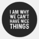 I Am Why We Can't Have Nice Things Classic Round Sticker