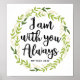 Elegant Hand-drawn brush script Typography Design with hand drawn laurel greenery watercolor wreath in green and tan features words from Jesus' Great Commission given to his disciples in the Gospel of Matthew, 28:20, "I Am with You Always."