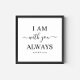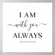 This modern design features the bible verse "I am with you always." Matthew 28:20 in elegant black serif and script font, on a white background. Text is customisable.