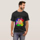 I give wanted to give this a 4 instead of a 5 because these Basic DARK T0shirts run unexpectedly SLIM or Narrow. Which is great if you do not have a potbelly, but I have a paunch. It isn't the shirt's fault that I've got a beer belly. The design and shirt itself is a quality cotton shirt. The color is more of a deep purple, but still a very pretty color. The Basic DARK T-shirts run a bit SLIMMER than the Basic Ts. The neck is a fraction narrower (or seems to be narrower) also. I'm a paunchy middle-aged woman and my neck is 12 inches (31cm) thick and the neckline fell about the same as in the photo of the man, and I had the desire to tug it a bit. So if you're a thick necked man or like loose shirts, be aware these are slimmer shirts. Once I get rid of my lockdown paunch it'll look great. The shirt washed well in cold water with no apparent bleeding. We don't have a dryer, so it hung dry. Did not shrink. Love the colors and the design. The design looks smaller on my shirt than it does on the model on-line. But still, it looks good on the shirt. The printing looks as it does on the model, just the size seems fractionally smaller. Washed garment in cold water, hung dry and design appeared unaffected.