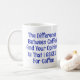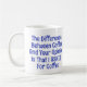 Add a little friendly sarcastic humour to your day with this cute mug with blue distressed lettering. The Difference Between Coffee And Your Opinion Is That I ASKED For Coffee, with ASKED in all capital letters for emphasis. Design is on both sides of cup to accomodate right and left handed users.
