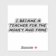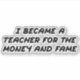 I became a teacher for the money and the fame